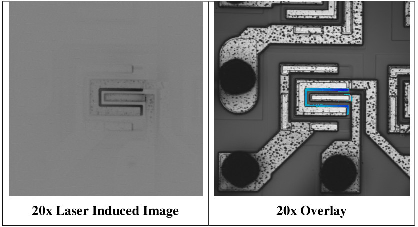 激光誘導(dǎo)掃描顯微技術(shù)模塊配置了波長1340nm的激光源及供應(yīng)商公司專有的Laser Pulsing技術(shù)(簡稱TIVA)。Laser Pulsing技術(shù)主要用于對檢測信號進(jìn)行放大,Laser Pulsing頻率可達(dá)1-10KHZ。該模塊通過外部激勵產(chǎn)生信號,再通過激光逐點(diǎn)對芯片進(jìn)行掃描,掃描過程中產(chǎn)生熱導(dǎo)效應(yīng),會引起電路中電阻的變化,進(jìn)而確定缺陷的位置。