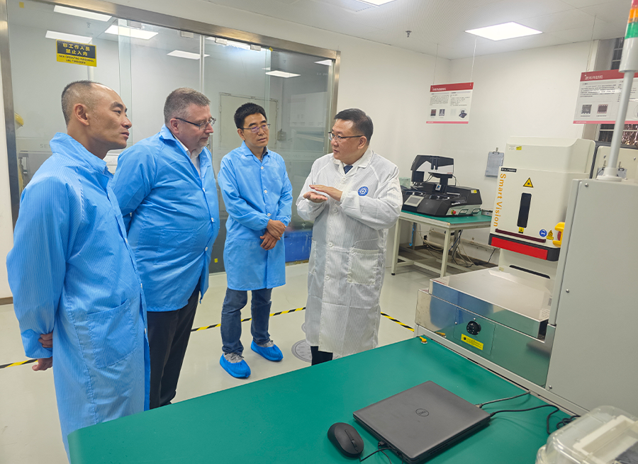 會后,羅義董事長陪同Beaurenaut先生一行細致參觀了芯派科技測試應(yīng)用中心和芯派新能源汽車動力控制研發(fā)中心。從芯派實驗檢測體系到新能源電驅(qū)電控優(yōu)勢產(chǎn)品,Beaurenaut 先生多次對芯派科技多年來在半導(dǎo)體高可靠性驗證方面的技術(shù)積累和服務(wù)能力大加贊賞。