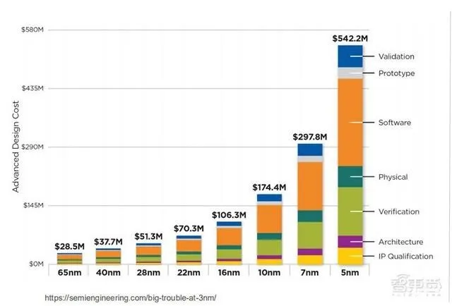 使用先進節(jié)點的好處很多,晶體管密度更大、占用空間更少、性能更高、功率更低,但挑戰(zhàn)也越來越難以克服。極小尺寸下,芯片物理瓶頸越來越難以克服。尤其在近幾年,先進節(jié)點走向10nm、7nm、5nm,問題就不再只是物理障礙了,節(jié)點越進化,微縮成本越高,能擔負巨額研發(fā)費用并實現盈利的設計公司越來越少。